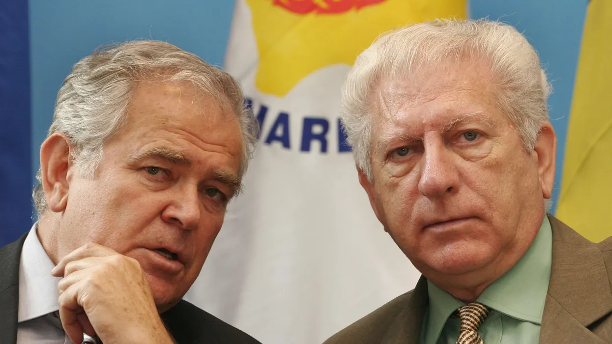 Presenintele PRM, Corneliu Vadim Tudor a prezentat, vineri, la o conferinta de presa, o caseta video privind o reuniune a ministrilor PSD in campania electorala din 2004. In imagine, Petre Popeanga (S)