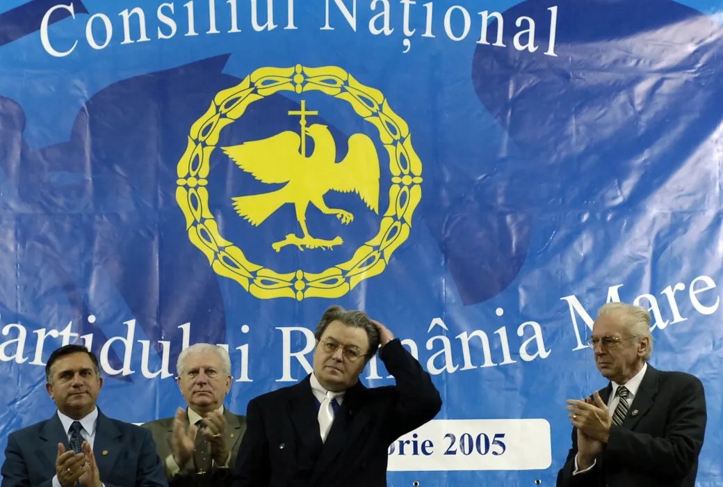 Simbata dimineata, a avut loc o intalnire cu presa in cadrul Plenarei Consiliului National al Partidului Romania Mare. In imagine, Gheorghe Funar, Dan Claudiu Tanasescu, Corneliu Vadim Tudor si Lucian Bolcas