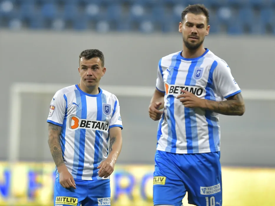 Fotbalistii craioveni Dan Nicolae Nistor si Elvir Koljic suparati in meciul de fotbal dintre Universitatea Craiova si Sepsi OSK Sfantu Gheorghe, contand pentru Cupa Romaniei, desfasurat pe Stadionul Ion Oblemenco din Craiova, joi 12 mai 2022. © FOTO:Razvan Pasarica/SPORT PICTURES