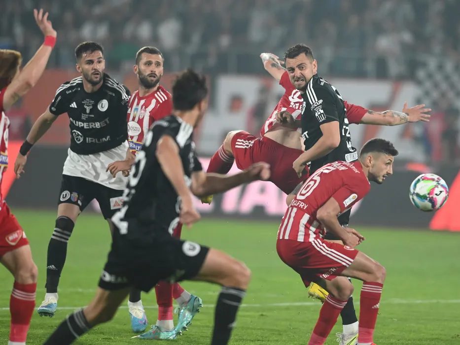 Pavol Safranko, Andrei George Miron si Nicolae Ionut Paun in meciul de fotbal dintre Sepsi OSK Sfantu Gheorghe si Universitatea Cluj, finala Cupei Romaniei, desfasurat pe Stadionul Municipal din Sibiu, miercuri 24 mai 2023. © FOTO:Razvan Pasarica/SPORT PICTURES