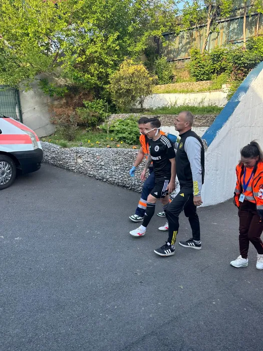 Dan Nistor, mutilat în meciul Oțelul – U Cluj! Imagini greu de privit cu fotbalistul ardelenilor: a fost dus la spital, după ce a fost lovit în față