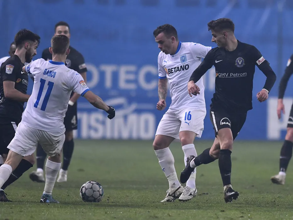 Virgil Andrei Ciobanu, Dan Nicolae Nistor si George Danut Ganea in meciul de fotbal dintre Universitatea Craiova si Viitorul Constanta, contand pentru Liga 1 Casa Pariurilor, desfasurat fara spectatori pe Stadionul Ion Oblemenco din Craiova, sambata 23 ianuarie 2021. © FOTO:Razvan Pasarica/SPORT PICTURES