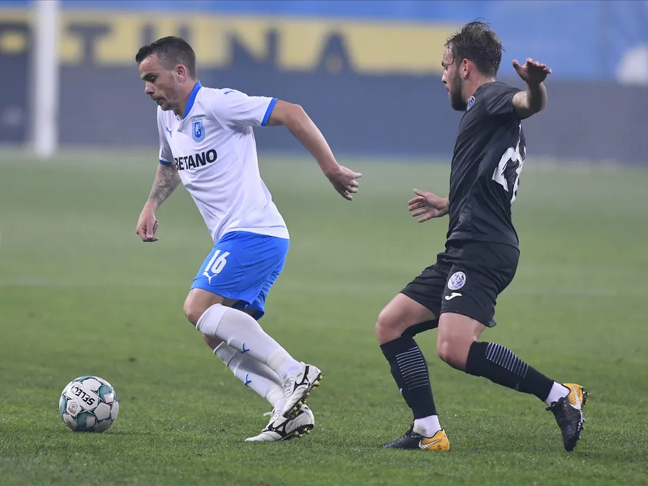 Dan Nicolae Nistor si Juan Bautista Cascini in meciul de fotbal dintre Universitatea Craiova si Academica Clinceni, contand pentru Liga 1 Casa Pariurilor, desfasurat fara spectatori pe Stadionul Ion Oblemenco din Craiova, vineri 23 octombrie 2020. © FOTO:Razvan Pasarica/SPORT PICTURES