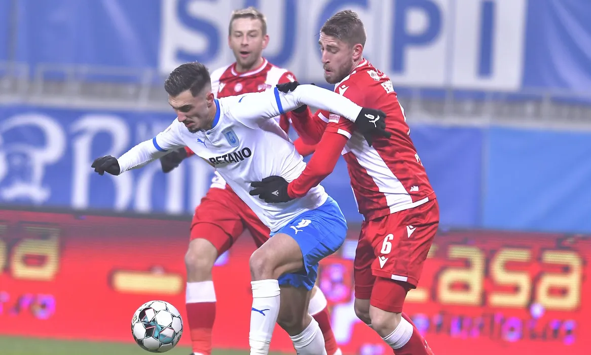 Andrei Virgil Ivan si Marco Ehmann in meciul de fotbal dintre Universitatea Craiova si Dinamo Bucuresti, contand pentru Liga 1 Casa Pariurilor, desfasurat fara spectatori pe Stadionul Ion Oblemenco din Craiova, sambata 6 februarie 2021. © FOTO:Razvan Pasarica/SPORT PICTURES