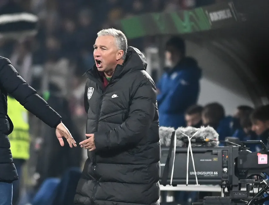 Dan Petrescu reactioneaza in meciul de fotbal dintre CFR Cluj si SS Lazio, din cadrul UEFA Europa Conference League, desfasurat pe Stadionul Dr. Constantin Radulescu din Cluj Napoca, joi 23 februarie 2023. © FOTO:Razvan Pasarica/SPORT PICTURES