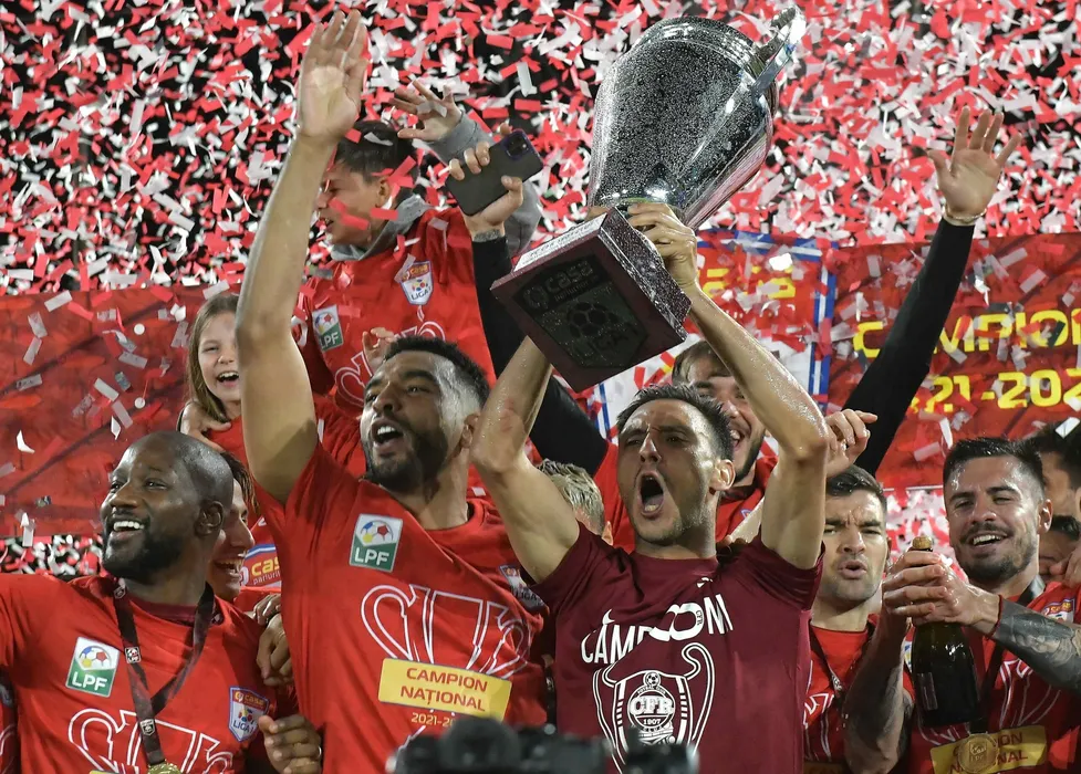 Bucurie clujeanaMario Camora, Mario Camora, Andonie Andrei Burca si Constantin Adrian Paun dupa castigarea campionatului in urma meciului de fotbal dintre CFR Cluj si Universitatea Craiova, contand pentru Play-off-ul Ligii 1 Casa Pariurilor, desfasurat pe Stadionul CFR Dr. Constantin Radulescu din Cluj Napoca, duminica 15 mai 2022. © FOTO:Razvan Pasarica/SPORT PICTURES