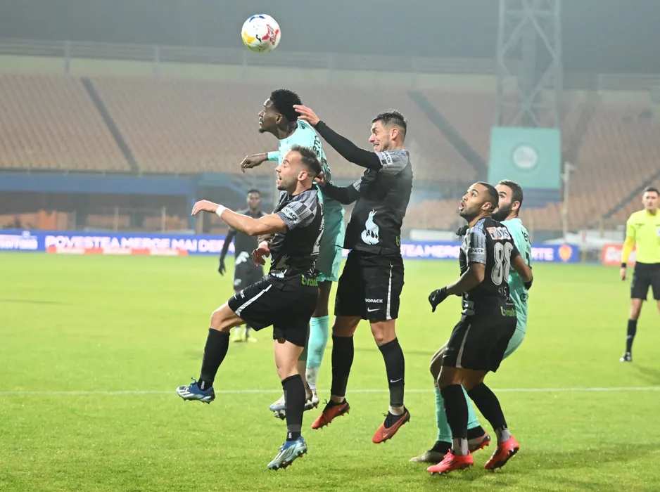 Abel Folha Martins Costa E Silva, Rodrigo Lima Felipe Carreiro și Beni Jean Luc Nkololo în meciul de fotbal dintre ACSM Ceahlăul Piatra Neamț și FC CFR 1097 Cluj, contând pentru Cupa României Betano, desfășurat pe Stadionul Ceahlăul din Piatra Neamț, joi 5 decembrie 2024. © FOTO: Tudi/SPORT PICTURES