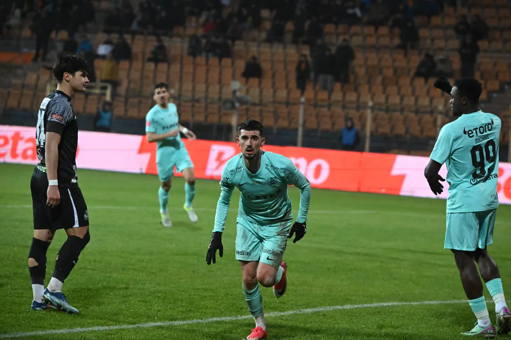 Meriton Korenica după un gol marcat în meciul de fotbal dintre ACSM Ceahlăul Piatra Neamț și FC CFR 1097 Cluj, contând pentru Cupa României Betano, desfășurat pe Stadionul Ceahlăul din Piatra Neamț, joi 5 decembrie 2024. © FOTO: Tudi/SPORT PICTURES
