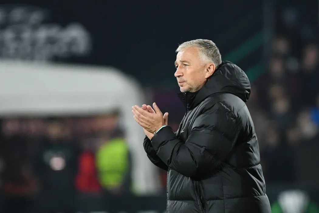 Dan Petrescu reactioneaza in timpul partidei dintre echipele CFR Cluj si Slavia Praga, partida disputata in grupele Conference League pe Stadionul Constantin Radulescu din Cluj, joi, 13 octombrie 2022. FLAVIU BUBOI / MEDIAFAX FOTO