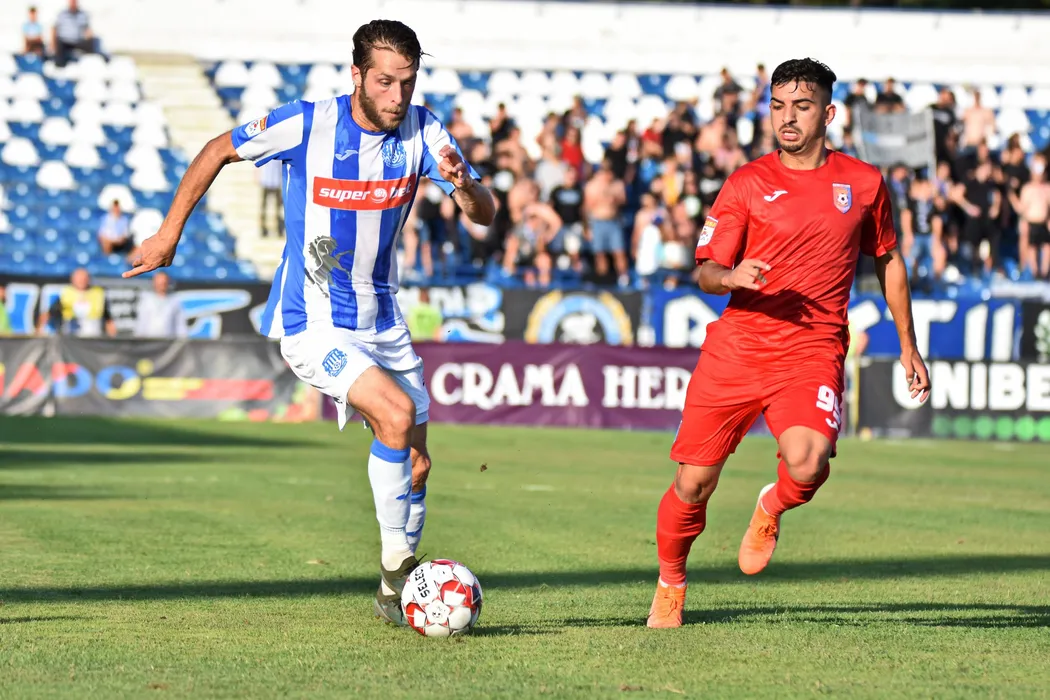 Adria Gallego (S) si Robert Neciu (D) in meciul de fotbal dintre CSM Politehnica Iasi si Chindia Targoviste din etapa a VII-a a Ligii 1, desfasurat pe stadionul Emil Alexandrescu din Iasi, vineri, 23 august 2019.© FOTO:Dragos Pascaneanu/SPORT PICTURES