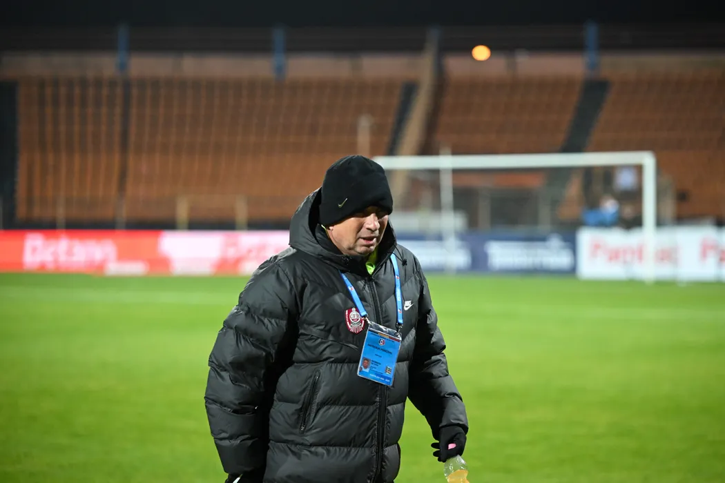 Dan Vasile Petrescu la startul meciului de fotbal dintre ACSM Ceahlăul Piatra Neamț și FC CFR 1097 Cluj, contând pentru Cupa României Betano, desfășurat pe Stadionul Ceahlăul din Piatra Neamț, joi 5 decembrie 2024. © FOTO: Tudi/SPORT PICTURES