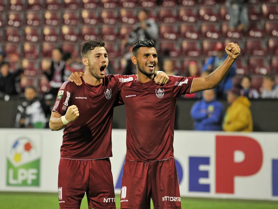 Cristian Lopez Santamaria si Davide Petrucci, jucatorii echipei CFR Cluj se bucura la finalul meciului de fotbal dintre CFR Cluj si CS U Craiova, din optimile Cupei Ligii Adeplast, disputat pe stadionul Dr. Constantin Radulescu din Cluj-Napoca, joi, 11 august 2016. MIRCEA ROSCA / SPORTPICTURES