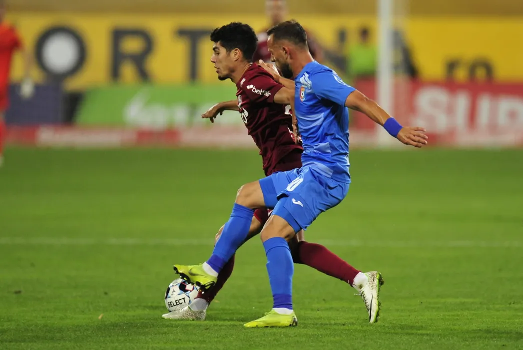 Anas Tahiri (S), de la CFR Cluj, suteaza in timpul meciului de fotbal contra echipei Chindia Targoviste din etapa a III-a a Ligii 1, disputat pe stadionul Dr. Constantin Radulescu din Cluj-Napoca, sambata, 31 iulie 2021. DAN HORIA TAUTAN / MEDIAFAX FOTO