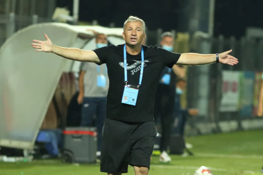 Dan Petrescu, antrenorul echipei CFR Cluj, urmareste meciul de fotbal contra echipei AFC Astra Giurgiu din etapa a VI-a a play-off-ului Ligii 1, disputat pe Stadionul M. Anastasovici din Giurgiu, duminica, 5 iulie 2020. GEORGE FILIP / MEDIAFAX FOTO