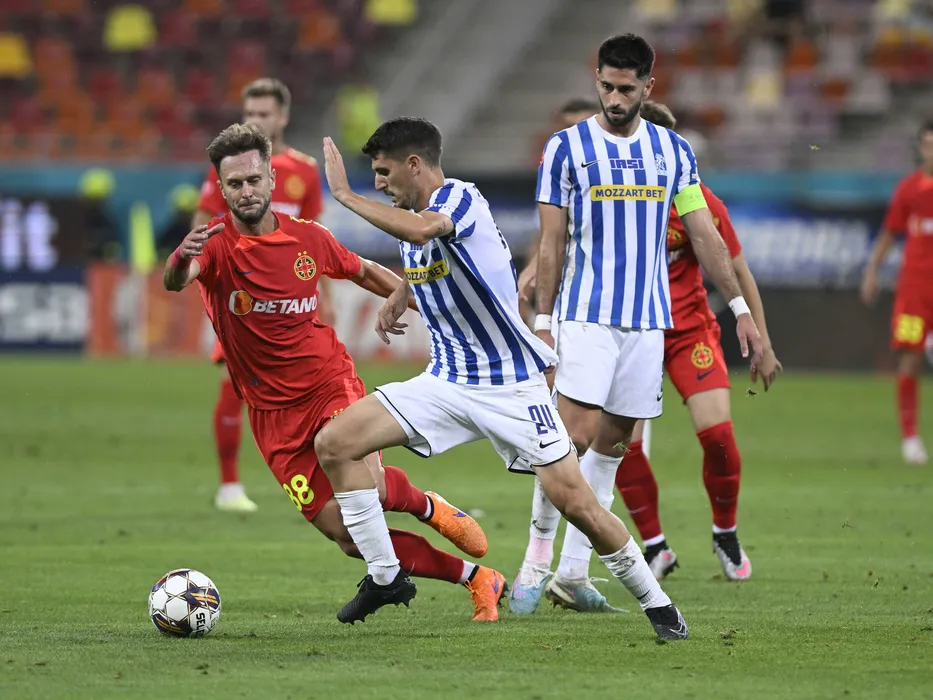 Damjan Djokovic,Julian Augusto Marchioni Garobbiosi Nicolas Samayoa in meciul de fotbal dintre FCSB si Politehnica Iasi, din cadrul Superligii Superbet, desfasurat pe Arena Nationala din Bucuresti, duminica 20 august 2023. © FOTO:Razvan Pasarica/SPORT PICTURES