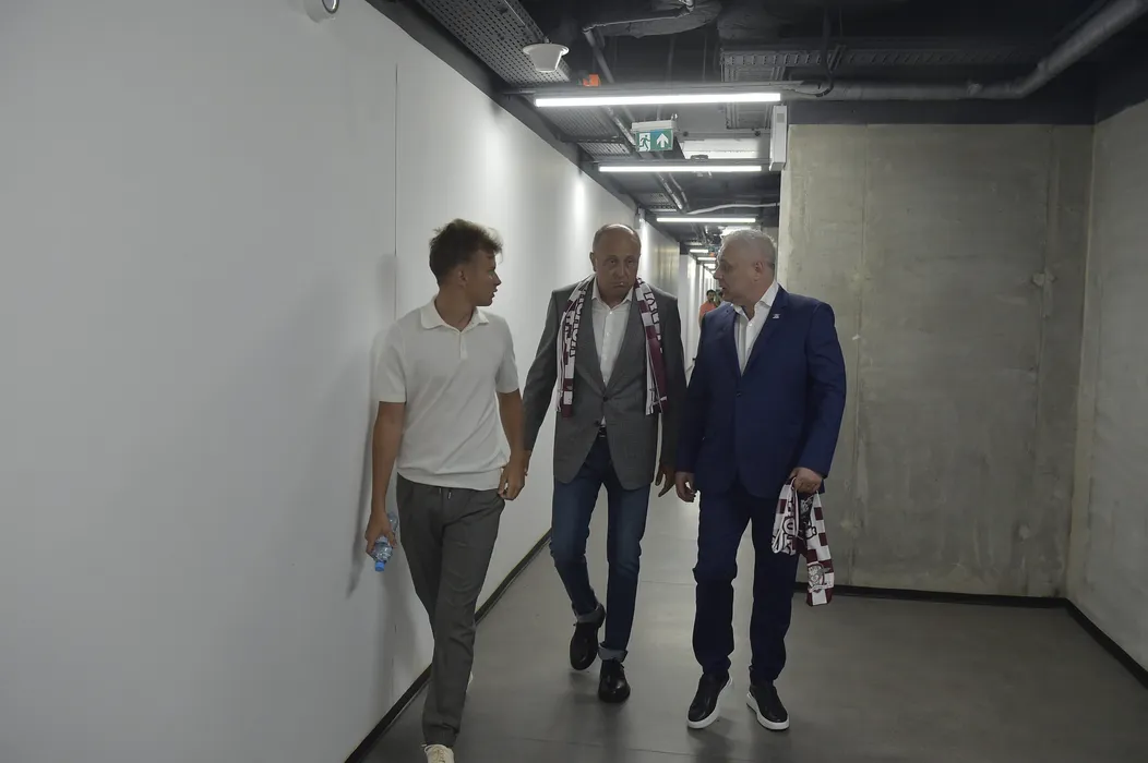 Dan Șucu și Marius Șumudică înainte de conferința de presă desfășurată la Clubul Rapid din București, miercuri 21 august 2024. © FOTO: Simion MECHNO/SPORT PICTURES