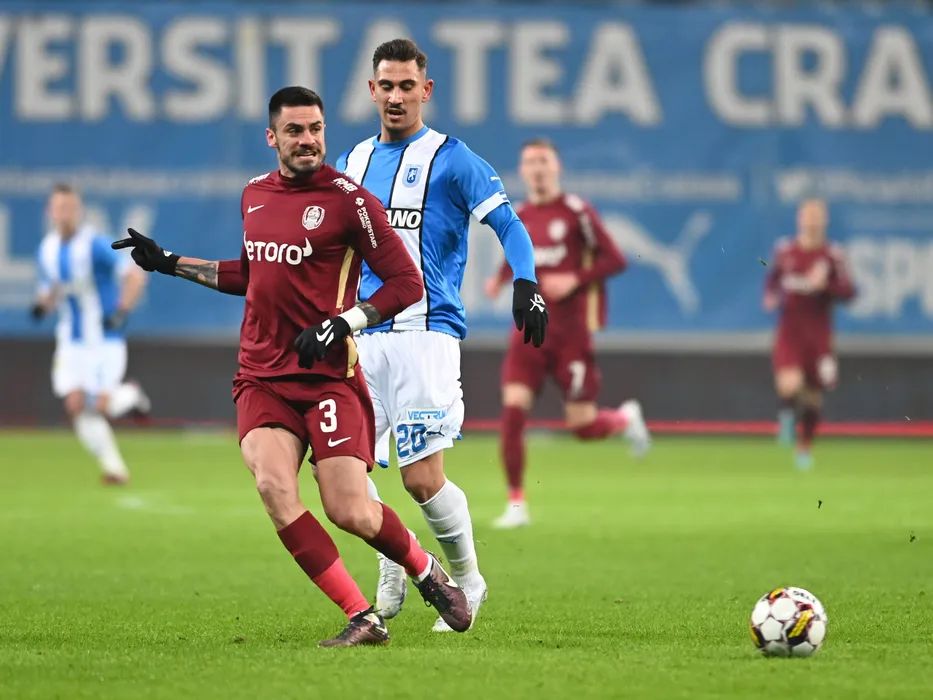 Andonie Andrei Burca si Andrei Virgil Ivan in meciul de fotbal dintre Universitatea Craiova si CFR Cluj, contand pentru Superliga Superbet, desfasurat pe Stadionul Ion Oblemenco din Craiova, sambata 11 februarie 2023. © FOTO:Razvan Pasarica/SPORT PICTURES