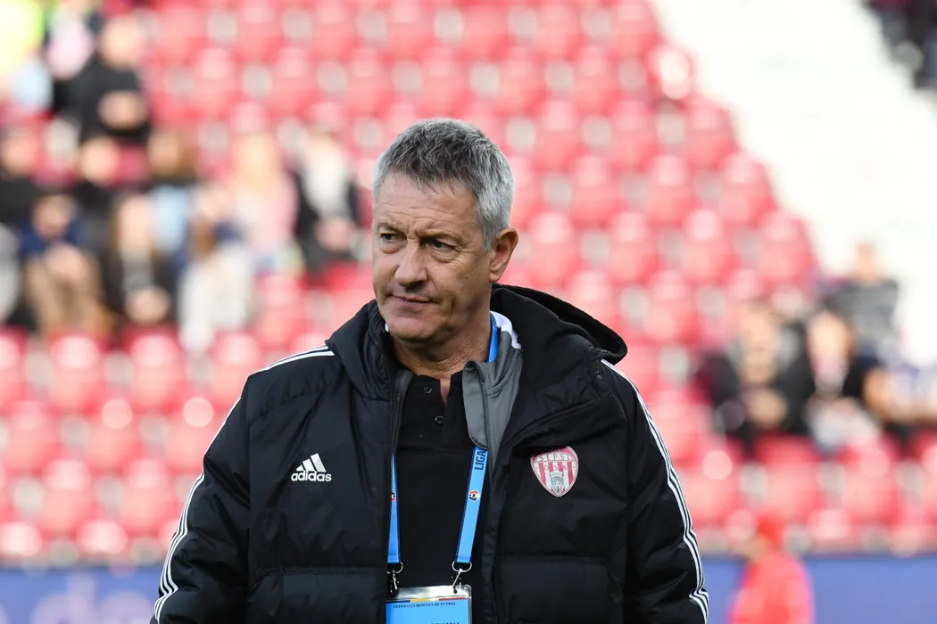 Cristiano Bergodi, antrenorul echipei Sepsi OSK, urmareste meciul de fotbal contra formatiei CFR Cluj din etapa a IV-a a play-off-ului Superligii, disputat pe stadionul Constantin Radulescu din Cluj-Napoca, sambata, 15 aprilie 2023. FLAVIU BUBOI / MEDIAFAX FOTO