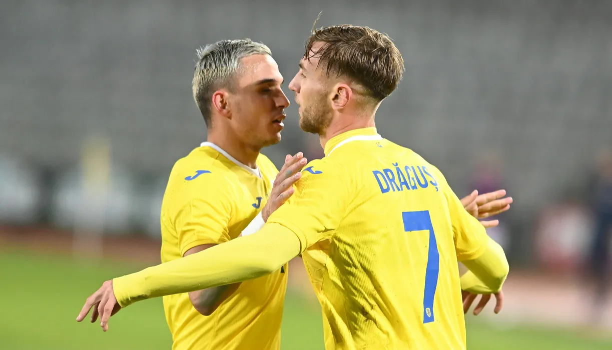 Bucurie a fotbalistilor romani dupa un gol marcat cu Cristian Manea si Denis Drăguș in meciul amical de fotbal dintre Romania si Slovenia, desfasurat pe Cluj Arena din Cluj Napoca, joi 17 noiembrie 2022. © FOTO:Razvan Pasarica/SPORT PICTURES