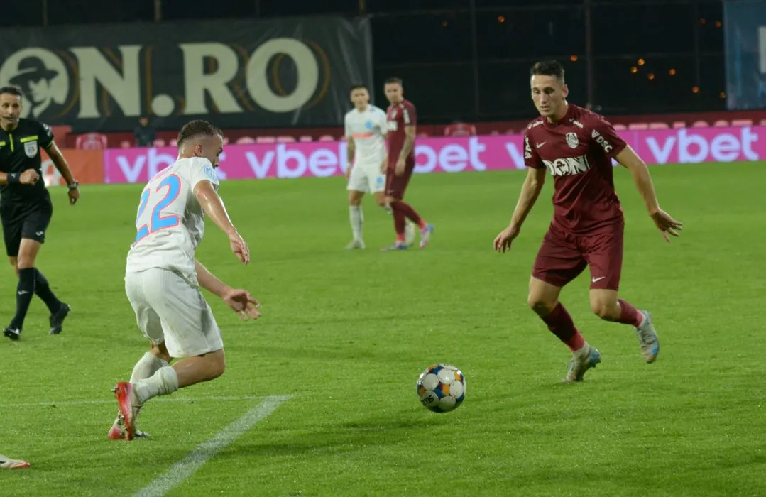 Mihai Vladut Toma si Alin Razvan Fica in meciul de fotbal dintre FC CFR 1907 Cluj si FCSB, contand pentru Superliga Superbet, desfasurat pe Stadionul Dr.Constantin Radulescu din Cluj-Napoca, duminica 31 august 2025. © FOTO:Alexandra Cristina Grigorescu/SPORT PICTURES