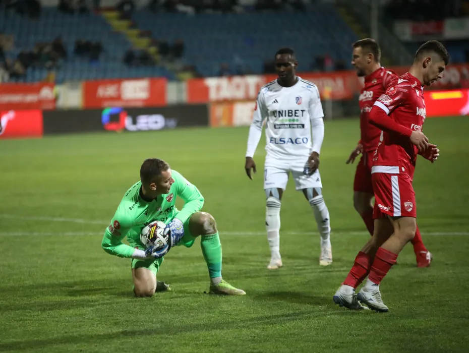 Adnan Golubovic, Cristian Ionuț Costin, Răzvan Bogdan Patriche Nichita și Kablan Davy N"Goma în meciul de fotbal dintre AFC Botosani și SC Dinamo 1948 SA, contând pentru SUPERLIGA SUPERBET, desfășurat pe Stadionul Municipal din Botoșani, luni 18 decembrie 2023. © FOTO: Ionuț TABULTOC/SPORT PICTURES