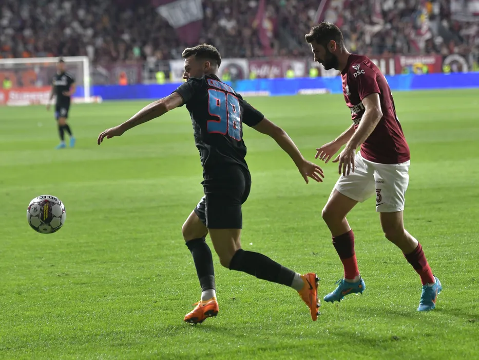 Andrei Ioan Cordea si Florin Bogdan Stefan in meciul de fotbal dintre Rapid Bucuresti si FCSB, contand pentru Superliga Superbet, desfasurat pe Stadionul Rapid Giulesti din Bucuresti, duminica 24 iulie 2022. © FOTO:Razvan Pasarica/SPORT PICTURES