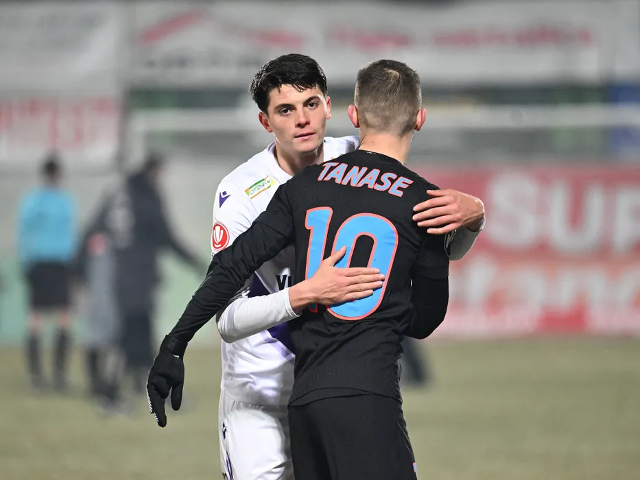 Mario Cristian Tudose si Florin Lucian Tănase se saluta dupa meciul de fotbal dintre FC Arges si FCSB, contand pentru Superliga Superbet, desfasurat pe Stadionul Orasenesc din Mioveni, vineri 16 ianuarie 2026. © FOTO:Razvan Pasarica/SPORT PICTURES