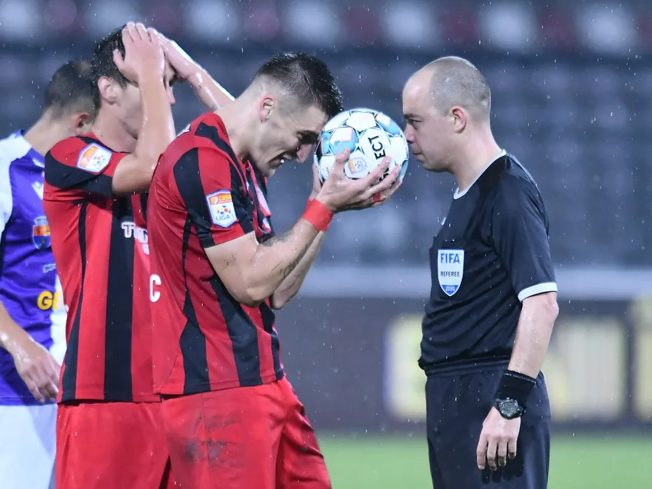 Daniel Graovac protesteaza la adresa arbitrului central Marius Avram in meciul de fotbal dintre FC Arges si Astra Giurgiu, contand pentru Liga 1 Casa Pariurilor, desfasurat fara spectatori pe Stadionul Nicolae Dobrin din Pitesti, vineri 16 octombrie 2020. © FOTO:Razvan Pasarica/SPORT PICTURES