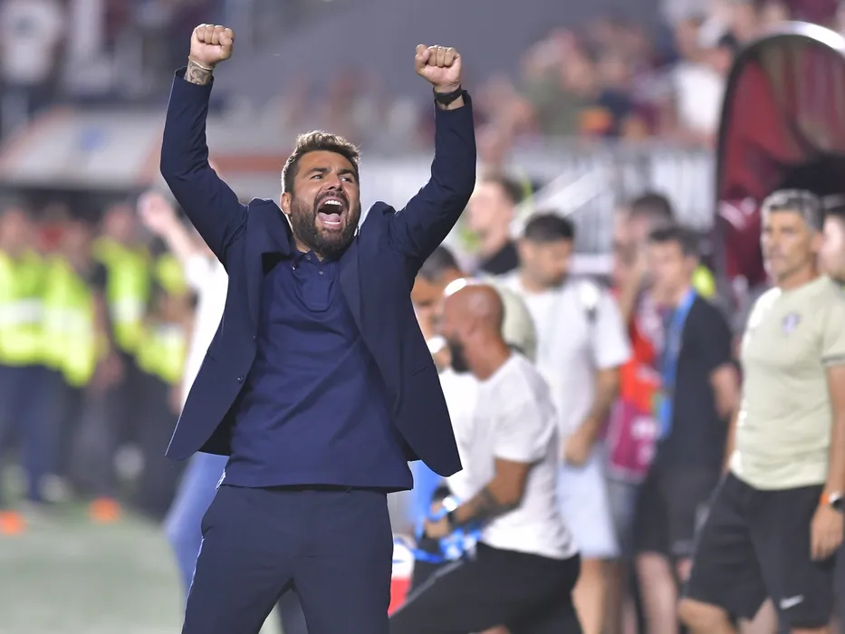 Adrian Mutu se bucura dupa victoria rapidista obtinuta in urma meciului de fotbal dintre Rapid Bucuresti si UTA Arad, contand pentru Superliga Superbet, desfasurat pe Stadionul Rapid Giulesti din Bucuresti, sambata 20 august 2022. © FOTO:Razvan Pasarica/SPORT PICTURES