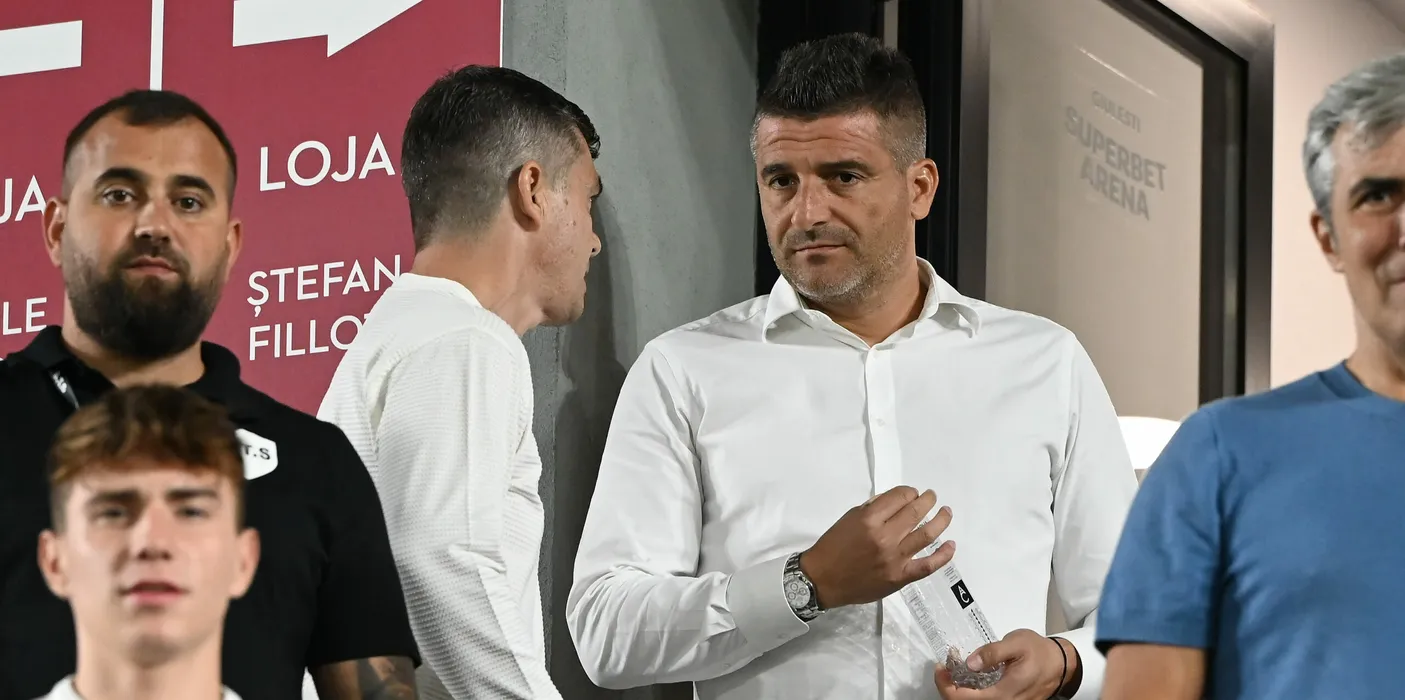 Robert Nita discuta cu Daniel Niculae in tribuna la meciul de fotbal dintre Rapid Bucuresti si CFR Cluj, din cadrul Superligii Superbet, desfasurat pe Superbet Arena-Giulesti din Bucuresti, luni 25 septembrie 2023. © FOTO:Razvan Pasarica/SPORT PICTURES
