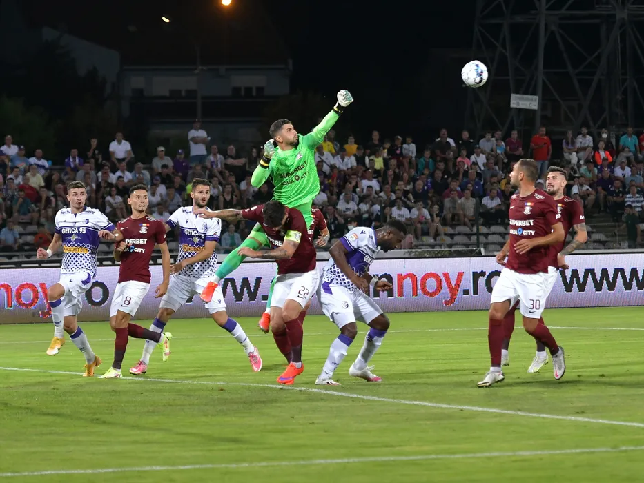 Grigore Ioan Turda, Nicolae Carnat, Ovidiu Andrei Pitian, Horatiu Alexandru Moldovan si Alexandru Cristian Albu in meciul de fotbal dintre FC Arges si Rapid Bucuresti, contand pentru Liga 1 Casa Pariurilor, desfasurat pe Stadionul Nicolae Dobrin din Pitesti, sambata 7 august 2021. © FOTO:Razvan Pasarica/SPORT PICTURES