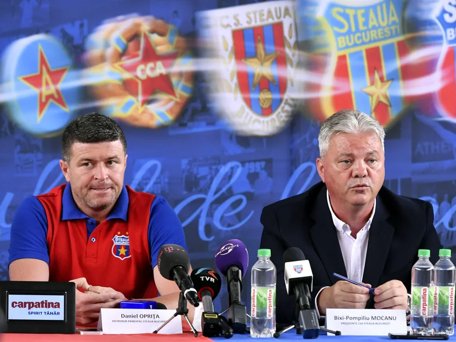 Daniel Oprita si Bixi Mocanu la conferinta de presa desfasurata in cadrul Compexului Sportiv Steaua din Bucuresti, luni 15 iulie 2019. © FOTO:Razvan Pasarica/SPORT PICTURES