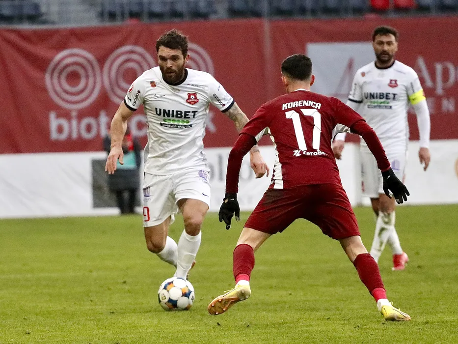 Aurelian Ionut Chitu in meciul de fotbal dintre AFC Hermannstadt Sibiu si FC CFR 1907 Cluj, contand pentru Superliga Superbet, desfasurat pe Stadionul Municipal din Sibiu, luni 16 februarie 2026. © FOTO:Valentin Macrea/SPORT PICTURES