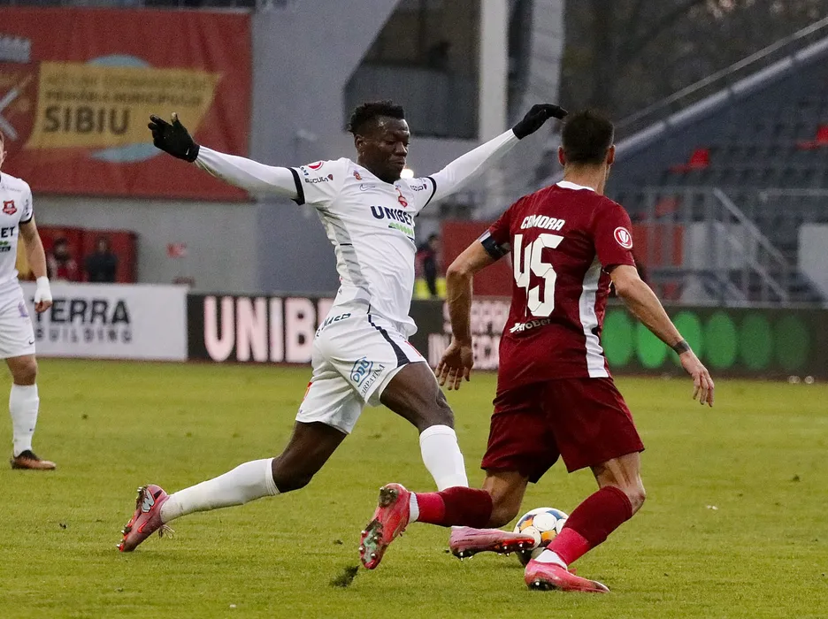 Christ Afalna Nkama in meciul de fotbal dintre AFC Hermannstadt Sibiu si FC CFR 1907 Cluj, contand pentru Superliga Superbet, desfasurat pe Stadionul Municipal din Sibiu, luni 16 februarie 2026. © FOTO:Valentin Macrea/SPORT PICTURES
