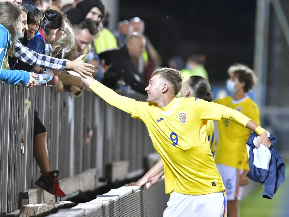 Luca Andronache saluta suporterii din tribuna dupa meciul amical de fotbal dintre Romania U20 si Portugalia U20, desfasurat pe Stadionul Anghel Iordanescu din Voluntari, joi 2 septembrie 2021. © FOTO:Razvan Pasarica/SPORT PICTURES