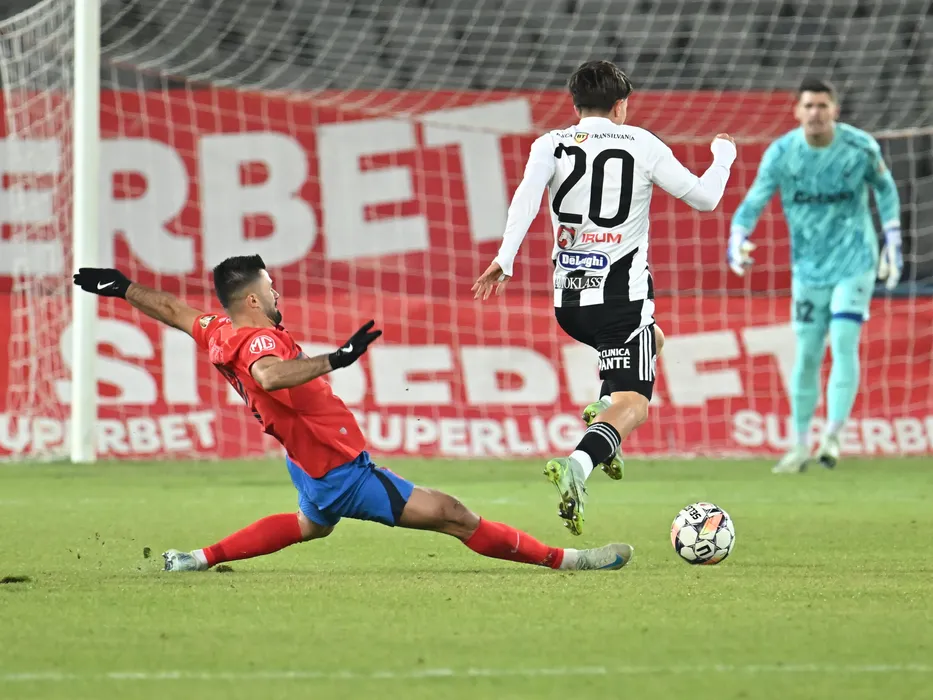 Valentin Crețu si Alexandru Cristian Bota în meciul de fotbal dintre Universitatea Cluj si FCSB, contând pentru Superliga Superbet, desfășurat pe Cluj Arena din Cluj Napoca, duminica 10 noiembrie 2024. © FOTO:Răzvan Pasarica/SPORT PICTURES