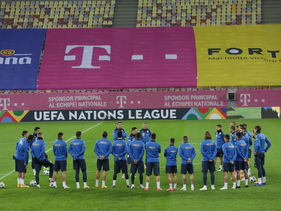 Fotbalistii romani alaturi de Mirel Radoi la antrenamentul oficial de dinaintea meciului anulat impotriva Norvegiei, contand pentru Liga Natiunilor desfasurat pe Arena Nationala din Bucuresti, sambata 14 noiembrie 2020. © FOTO:SPORT PICTURES