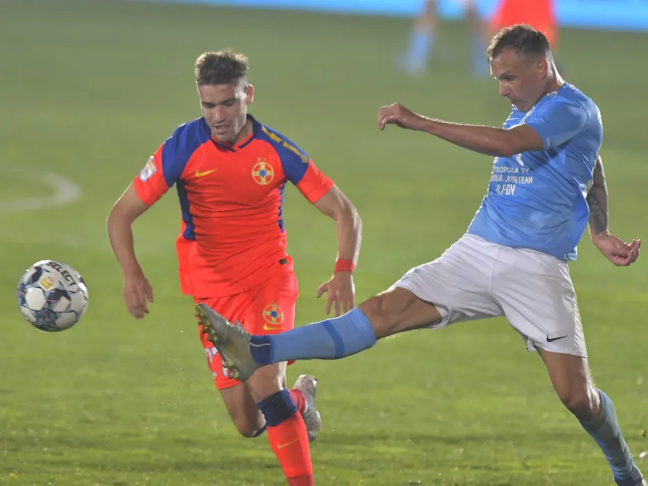 Darius Dumitru Olaru si Lukas Droppa in meciul de fotbal dintre FC Voluntari si FCSB, contand pentru Liga 1 Casa Pariurilor, desfasurat pe Stadionul Anghel Iordanescu din Voluntari, duminica 7 noiembrie 2021. © FOTO:Razvan Pasarica/SPORT PICTURES