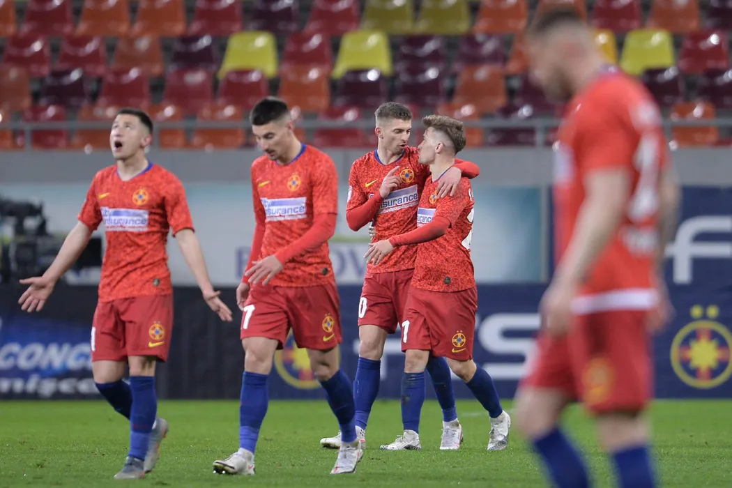 Echipele FCSB (echipament rosu) si CFR Cluj s-au intalnit intr-o partida disputata in etapa 28 din Liga 1 la fotbal, vineri 19 martie 2021, pe Arena Nationala din Bucuresti. ALEXANDRU DOBRE / MEDIAFAX FOTO