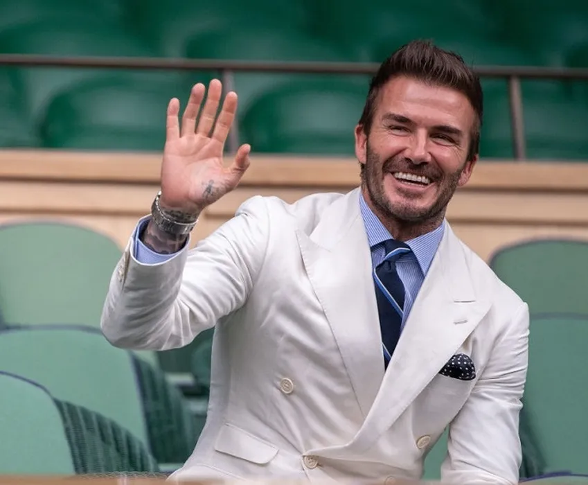 LONDON, ENGLAND - JULY 09: David Beckham, former football player looks on from the Royal Box during the Men's Singles Semi-Final match between Novak Djokovic of Serbia and Denis Shapovalov of Canada during Day Eleven of The Championships - Wimbledon 2021 at All England Lawn Tennis and Croquet Club on July 09, 2021 in London, England. (Photo by AELTC/Ben Solomon - Pool/Getty Images)
