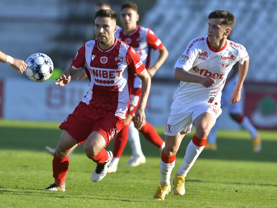 Alexandru Ilie Rauta si Damian Daniel Isac in meciul de fotbal dintre Dinamo Bucuresti si UTA Arad, contand pentru Liga 1 Casa Pariurilor, desfasurat pe Stadionul Dinamo din Bucuresti, sambata 2 octombrie 2021. © FOTO:Razvan Pasarica/SPORT PICTURES