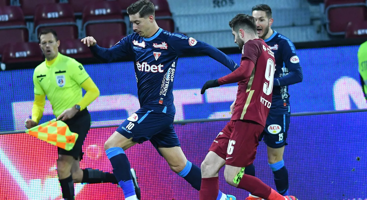 David Raul Miculescu si Florin Bogdan Stefan in meciul de fotbal dintre CFR Cluj si UTA Arad, contand pentru Liga 1 Casa Pariurilor, desfasurat pe Stadionul Dr. Constantin Radulescu din Cluj Napoca, marti 08 februarie 2022. © FOTO:Flaviu Buboi/SPORT PICTURES