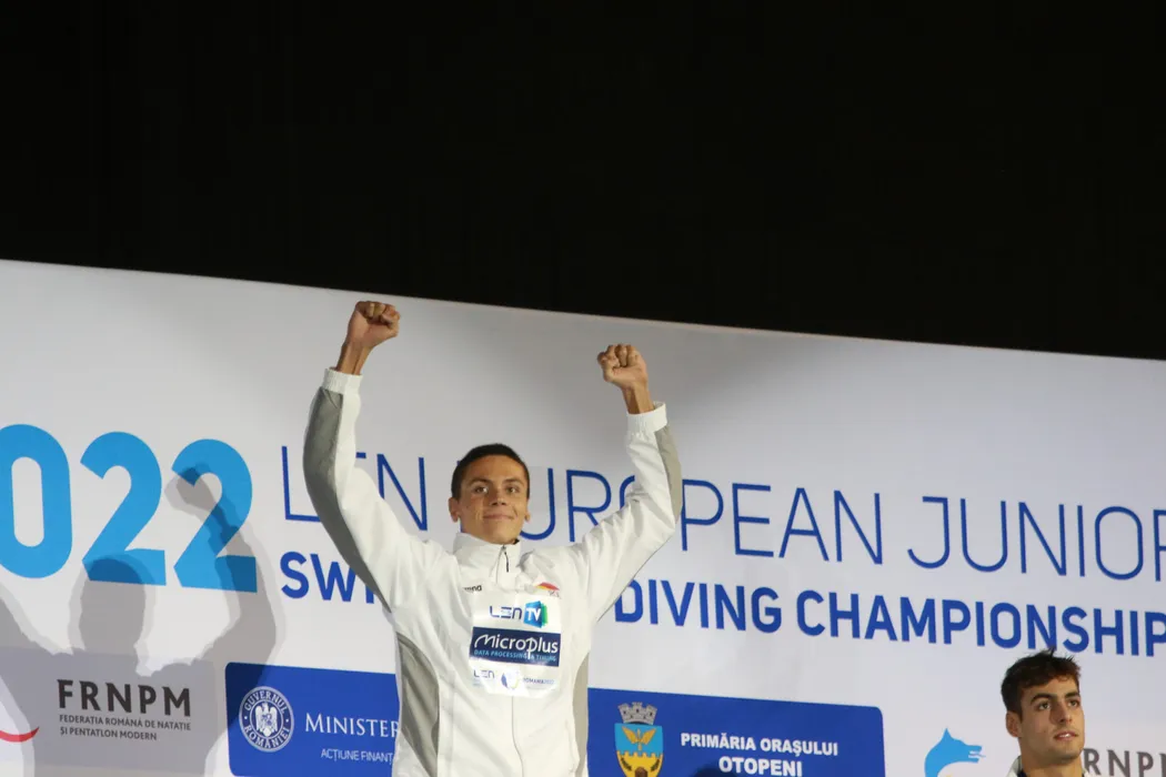 David Popovici a castigat medalia de aur în proba de 100 de metri liber individual masculin. la Europenele de natatie de juniori de la Otopeni, duminica 10 iulie 2022. © FOTO:Marian Burlacu/SPORT PICTURES