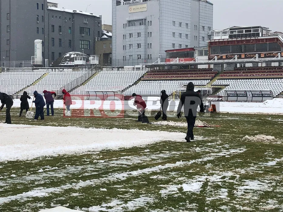 Imagini emoționante înainte de Dinamo – Gaz Metan! DDB a chemat suporterii să dea zăpada de pe terenul din „Ștefan cel Mare”! Și cei mai mici au pus umărul la treabă | FOTO & VIDEO EXCLUSIV
