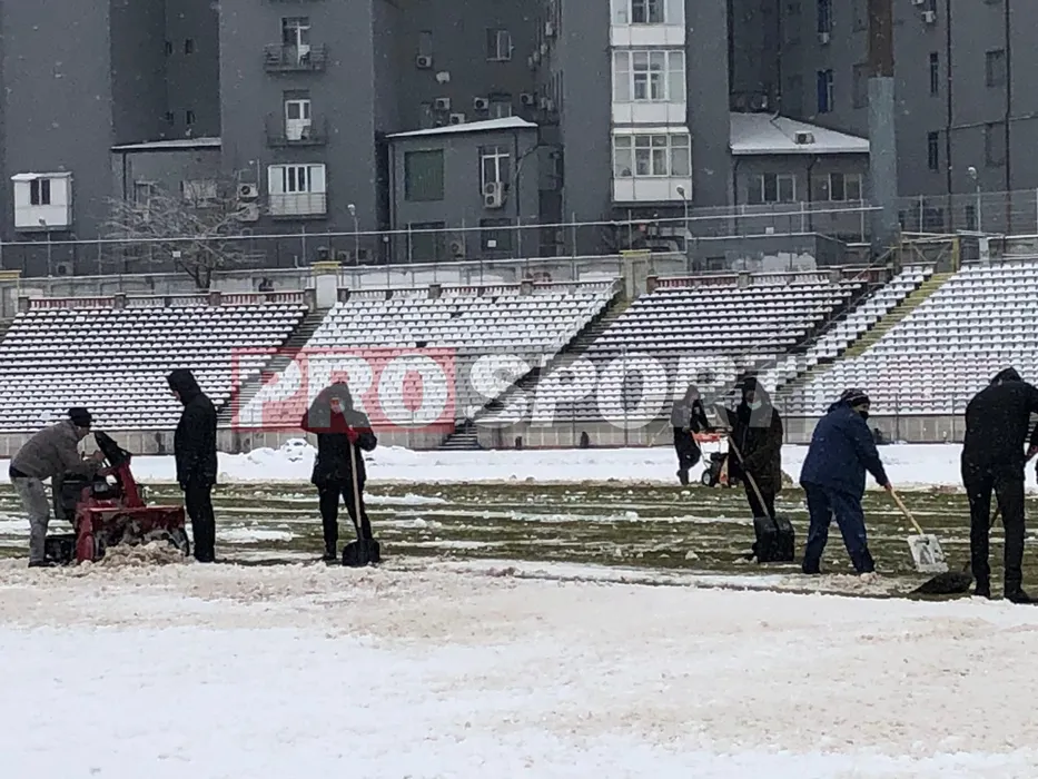 Imagini emoționante înainte de Dinamo – Gaz Metan! DDB a chemat suporterii să dea zăpada de pe terenul din „Ștefan cel Mare”! Și cei mai mici au pus umărul la treabă | FOTO & VIDEO EXCLUSIV
