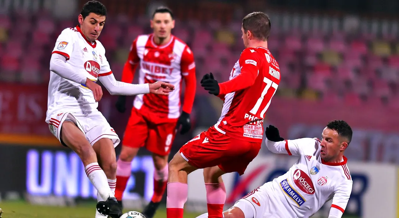 Gabriel Cristian Vasvari, Vlad Alexandru Achim si Adnan Aganovic in meciul de fotbal dintre Dinamo Bucuresti si Sepsi OSK Sfantu Gheorghe, contand pentru Liga 1 Casa Pariurilor, desfasurat fara spectatori pe Stadionul Dinamo din Bucuresti, sambata 13 februarie 2021. © FOTO:Razvan Pasarica/SPORT PICTURES