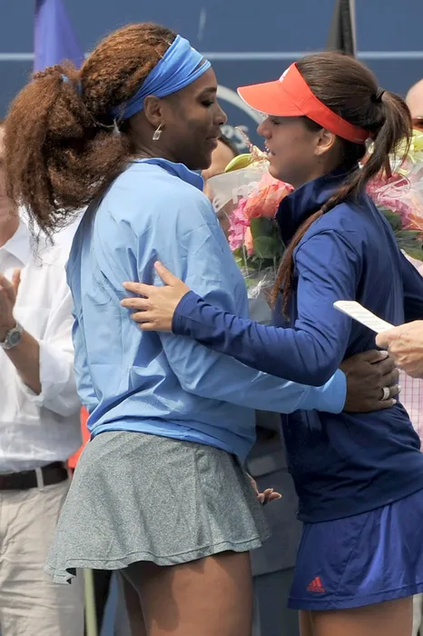 Aug. 11, 2013 - Toronto, Ontario, Canada - Toronto, Ontario, Canada, August 11, 2013. Sorana Cirstea (ROU)is congratulated by Serena Williams (USA) after the finals of the WTA Rogers Cup at Rexall Centre in Toronto, Ontario, Canada on August 11th. Williams is the champion 6-2, 6-0...Gerry Angus/CSM,Image: 722718527, License: Rights-managed, Restrictions: This content is intended for editorial use only. For other uses, additional clearances may be required.