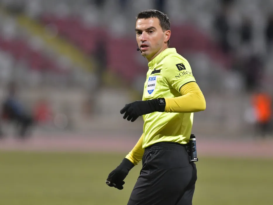 Arbitrul central Ovidiu Hategan reactioneaza in meciul de fotbal dintre Dinamo Bucuresti si FCSB contand pentru Liga 1 Casa Pariurilor, desfasurat pe Stadionul Dinamo din Bucuresti, duminica 30 ianuarie 2022. © FOTO:Razvan Pasarica/SPORT PICTURES