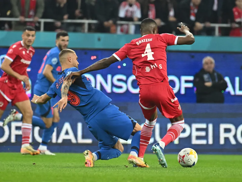George Daniel Bîrligea si Kennedy Kofi Boateng in meciul de fotbal dintre Dinamo Bucuresti si FCSB, contand pentru Cupa Romaniei, desfasurat pe Arena Nationala din Bucuresti, miercuri 30 octombrie 2024. © FOTO:Razvan Pasarica/SPORT PICTURES