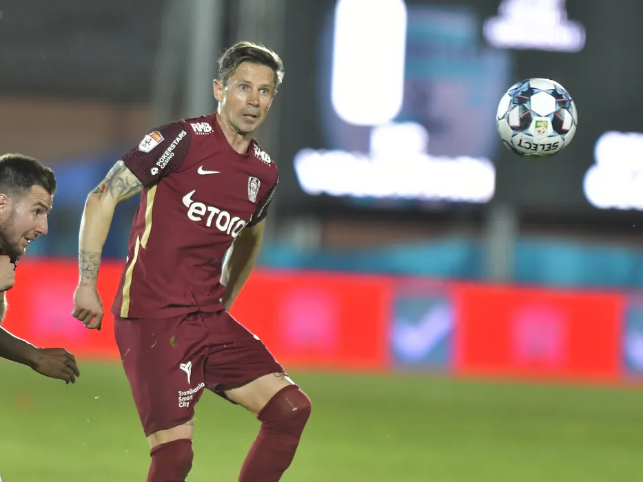 Constantin Adrian Paun si Ciprian Ioan Deac in meciul de fotbal dintre FC Voluntari si CFR Cluj, contand pentru Play-off-ul Ligii 1 Casa Pariurilor, desfasurat pe Stadionul Anghel Iordanescu din Voluntari, duminica 24 aprilie 2022. © FOTO:Razvan Pasarica/SPORT PICTURES